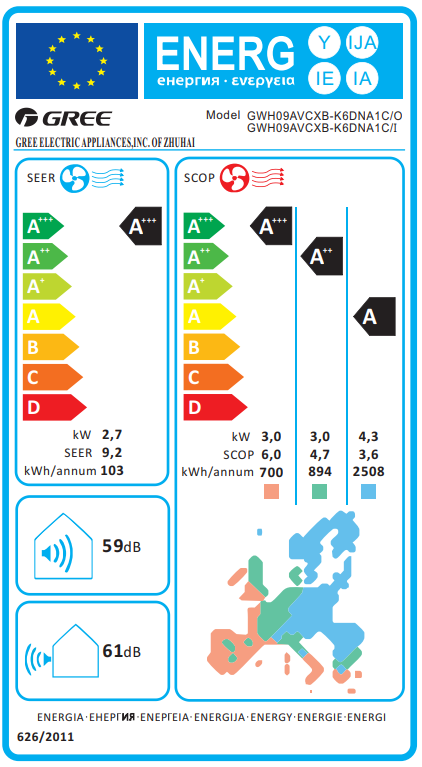 | Ενεργειακή κλάση (Μ/Θ/Ψ) | A+++ | Α++/Α+++/A |