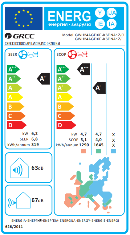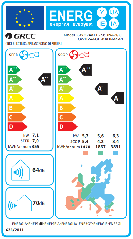 | Ενεργειακή κλάση (Μ/Θ/Ψ) | A++ | A+/ A+++/ A |